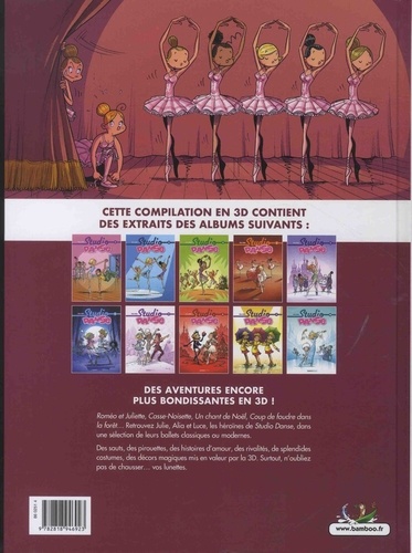 Des aventures encore plus bondissantes en 3D ! Roméo et Juliette, Casse-Noisette, Un chant de Noël, Coup de foudre dans la forêt... Retrouvez Julie, Alia et Luce, les héroïnes de Studio Danse, dans une sélection de leurs ballets classiques ou modernes. Des sauts, des pirouettes, des histoires d'amour, des rivalités, de splendides costumes, des décors magiques mis en valeur par la 3D. Surtout, n'oubliez pas de chausser... vos lunettes.