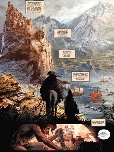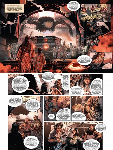 Un récit d'apprentissage sur les routes d'un Japon médiéval et mythologique A l'issue de la sanglante bataille des îles de Kido qui voit la défaite des troupes de son père, le jeune Mikédi poursuit sa formation auprès du maître sabreur Miyamoto Musashi. Et parce qu'un bon guerrier ne peut se réduire à sa seule force, Mikédi va parfaire son apprentissage au palais des saveurs. Ici, 2 ans sans son maître, il apprend l'humilité en pratiquant toutes sortes de tâches ingrates, avant de s'aventurer dans la Pagode des plaisirs... Là, des dizaines de somptueuses créatures lui apprendront un autre art fondamental : celui de l'amour. Le but secret de cet étrange enseignement : cultiver ses 5 sens. A l'issue de ce parcours initiatique, Mikédi va-t-il finalement devenir le guerrier digne de séduire la fille de l'impératrice ? En adaptant en trois tomes La Voie du Sabre de Thomas Day, publié aux éditions Folio SF et vendu à plus de 25 000 exemplaires, Mathieu Mariolle et Federico Ferniani nous plongent dans un Japon de fantasy au gré de splendides planches fourmillant de détails. Richard Guérineau (Le Chant des Stryges, Charly 9...) est l'invité d'honneur de ce second tome pour en interpréter l'une des légendes.
