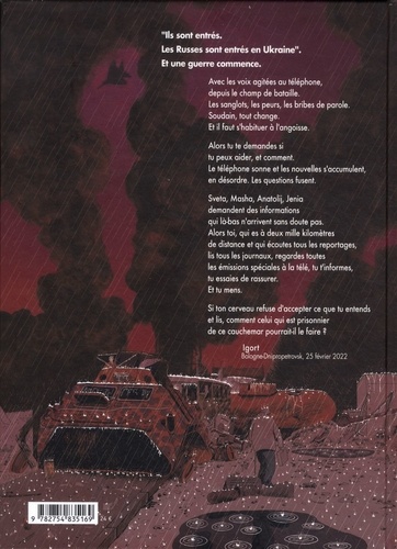 Igort a vécu en Ukraine, la famille de son épouse y vit toujours. Après avoir raconté les racines de ce conflit dans Les Cahiers ukrainiens et Les Cahiers russes, il revient sur ce sujet pour donner une voix à ceux que généralement on entend peu : les gens ordinaires qui vivent et subissent les conséquences d'une guerre insensée et brutale. Un récit écrit en temps réel qui témoigne de l'horreur : une vie sous les bombardements, dans les villes assiégées... et puis la résistance, la détermination d'un peuple qui souffre mais ne cède pas. Un livre bouleversant et essentiel dont l'espoir, la désillusion, la fierté et la solidarité construisent la structure dramatique.