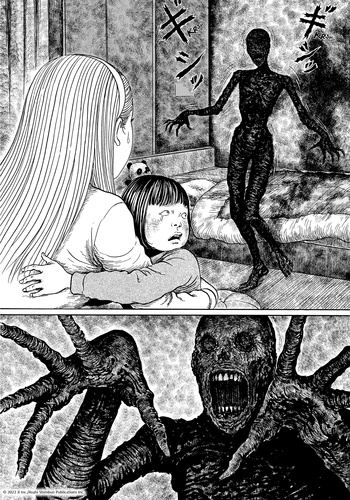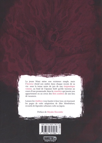La jeune Mimi mène une existence simple, mais l'horreur étend son ombre dans chaque recoin de sa vie : sous la tenue noire de jais de son énigmatique voisine, au fond de l'épaisse forêt qu'elle traverse au cours d'une promenade, dans le cimetière qui jouxte son appartement ou au creux des flots sombres de son lieu de vacances. Laissez les ténèbres vous hanter à leur tour, en tournant les pages de cette adaptation de Shin Mimibukuro, recueils de légendes urbaines culte au Japon.