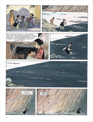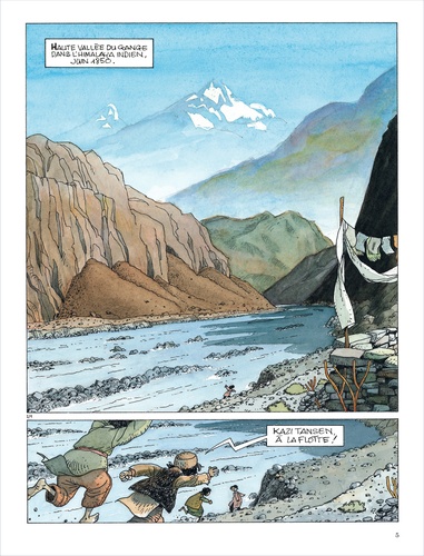 " - Resham, je n'aime pas trop ce qui arrive : plus les semaines passent et plus Basanta te regarde en rival. - Quoi, père ? Tu nous espionnes ? Je n'ai pas le droit d'embrasser Mina ? - C'est ton frère qui a choisi cette femme, tu devrais être moins provocant". Les chevaux du vent, ce sont ces drapeaux de prières multicolores qui ondulent sous la brise, claquent sous la tempête, se délavent sous le soleil et la mousson, se déchirent sous la marche du temps, mais sans cesser d'illuminer les esprits. Les chevaux du vent, c'est la saga d'une famille népalaise à la fin du XIXe siècle ; sur fond de colonisation britannique, tous les mouvements de la tragédie se jouent à l'ombre des cimes enneigées de l'Himalaya. Jean-Claude Fournier a toujours vu, en la bande dessinée, la synthèse de ses deux passions : le dessin et le théâtre. Avec Les chevaux du vent, c'est le toit du monde que son ami Lax lui offre pour scène à ciel ouvert.