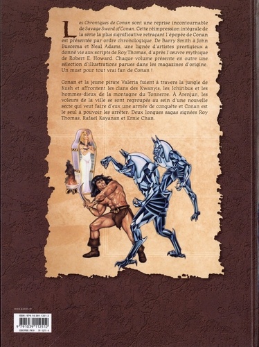 Conan le Barbare et Valeria vivent d'incroyables aventures dans des contrées exotiques et font face à des cultes maléfiques et à des créatures plus dangereuses les unes que les autres dans ces récits signés par Roy Thomas ! Trente-sixième volume de la série Savage Sword of Conan, publiée par Marvel jusqu'en 1995. Roy Thomas est l'un des scénaristes les plus associés au barbare cimmérien mais il s'amuse ici à adapter plusieurs récits peu connus du personnage avec un roman de Roland Green ou des poèmes du créateur de Conan (Robert E. Howard). Plus surprenant : il s'inspire aussi d'une histoire de Tennessee Williams ! Pour l'anecdote, le récit de l'auteur d'Un Tramway nommé Désir est sa première histoire publiée (à l'âge de 16 ans) et ne faisait pas référence à Conan. Dans le magazine Weird Tales, elle était cependant à la suite de Red Shadows d'Howard, la première nouvelle avec Solomon Kane.