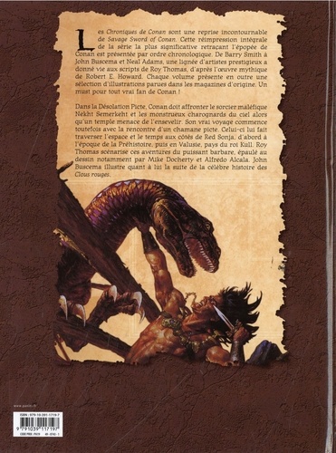 Dans cet avant-dernier tome, Conan le Barbare combat le Baron Sabaninus et ses démons mais fait également équipe avec Solomon Kane, le Puritain. Dans cet avant-dernier tome des Chroniques de Cona, n on retrouve comme toujours la série en noir & blanc Savage Sword of Conan débutée en 2008 en France (qui bénéficie désormais d'une réédition en Omnibus). Deux des auteurs les plus emblématiques du Cimmérien sont aux crédits de ce tome : Roy Thomas au scénario et John Buscema au dessin. C'est également l'occasion de retrouver un autre personnage créé par Robert E. Howard : Solomon Kane.