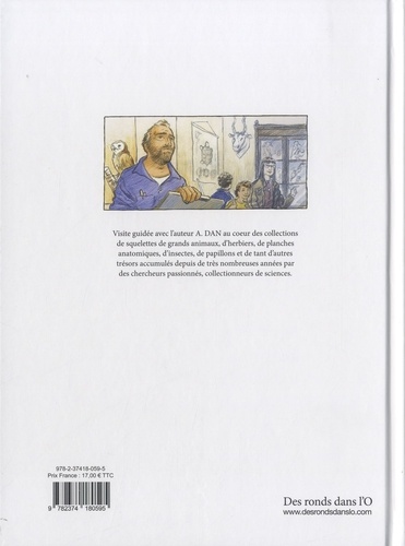 A l'occasion d'un reportage dessiné au sein des collections scientifiques de l'Université de Rennes 1, A. Dan, auteur de bande dessinée ayant lui-même une formation scientifique, nous fait découvrir les différentes salles consacrées aux squelettes des grands animaux, aux herbiers et planches anatomiques, aux insectes comme les innombrables espèces de papillons, aux cristaux et tant d'autres trésors accumulés depuis de très nombreuses années par des chercheurs, collectionneurs de sciences.