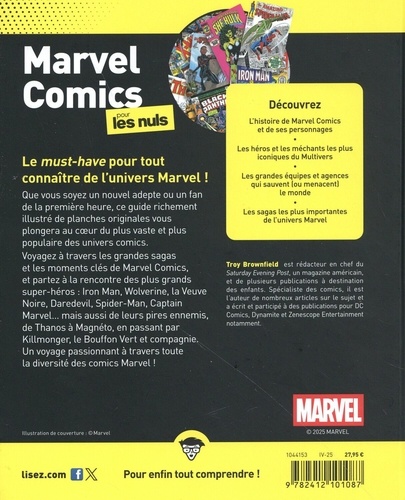 Le must-have pour tout connaître de l'univers Marvel ! Que vous soyez un nouvel adepte ou un fan de la première heure, ce guide richement illustré de planches originales vous plongera au coeur du plus vaste et plus populaire des univers comics. Voyagez à travers les grandes sagas et les moments clés de Marvel Comics, et partez à la rencontre des plus grands super-héros : Iron Man, Wolverine, la Veuve Noire, Daredevil, Spider-Man, Captain Marvel... mais aussi de leurs pires ennemis, de Thanos à Magnéto, en passant par Killmonger, le Bouffon Vert et compagnie. Un voyage passionnant à travers toute la diversité des comics Marvel ! Découvrez : L'histoire de Marvel Comics et de ses personnages Les héros et les méchants les plus iconiques du Multivers Les grandes équipes et agences qui sauvent (ou menacent) le monde Les sagas les plus importantes de l'univers Marvel