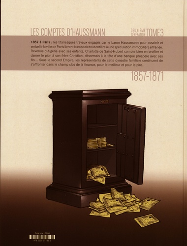 Tome 3 de cette grande saga familiale, la nouvelle série de Pierre Boisserie et Philippe Guillaume. La guerre familiale entre les Saint-Hubert se poursuit, mettant en scène les descendants de ceux qui ont animé les deux premiers épisodes de la série. Le contexte historique est toujours aussi passionnant puisque nous sommes maintenant au Second Empire, avec la reconstruction de Paris par le préfet Hausmann et, bien sûr, les énormes enjeux financiers liés à cette immense opération immobilière... Mêlant fiction et réalité, cette série est passionnante de bout en bout ! Premier volet du dyptique dessiné par Malo Kerfriden de cette chronique d'une saga familiale où l'argent et la finance régissent le monde.