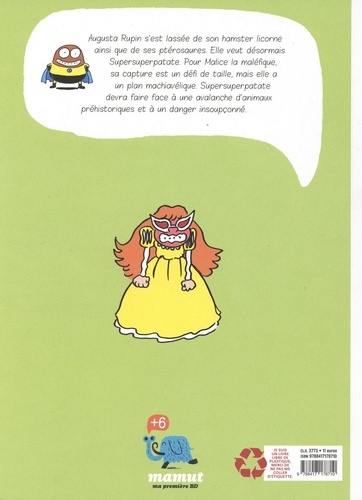 Superpatate revient avec la suite et fin du tome précédent : Les dangereux caprices d'Augusta Rupin. Encore tout un tas de pterosaures et dinosaures pour une lutte finale épuisante, très épuisante... Superpatate revient avec la suite et fin du tome précédent : Les dangereux caprices d'Augusta Rupin. Encore tout un tas de pterosaures et dinosaures pour une lutte finale épuisante, très épuisante... Augusta Rupin s'est lassée de son hamster licorne ainsi que de ses ptérosaures. Elle veut désormais Supersuperpatate. Pour Malice la maléfique, sa capture est un défi de taille, mais elle a un plan machiavélique... Supersuperpatate devra faire face à une avalanche d'animaux préhistoriques et affronter des dangers insoupçonnés...