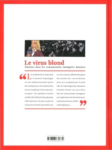 Les incidents de ce matin dans le centre de Copenhague ne sont malheureusement qu'une des conséquences d'un phénomène encore inexpliqué et bien plus préoccupant. Une épidémie insolite semble s'être déclarée dans plusieurs villes danoises. De plus en plus de naissances seraient perturbées par un virus inconnu affectant les gènes des nouveau-nés : ces six derniers mois, on a enregistré pour la seule ville de Copenhague 830 naissances d'enfants blonds aux yeux bleus dans les communautés immigrées. Les implications de tels bouleversements pourraient se révéler catastrophiques...