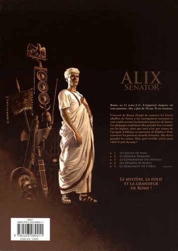 Alix part en Grèce, sur ordre d'Auguste, pour rapporter les recueils de prophéties des oracles d'Apollon. Des Spartiates, contestant l'autorité de Rome, tentent de le devancer. Alors que Khéphren agit en sous-main pour faire échouer sa mission, Alix fait la rencontre d'Héraklion, Spartiate dénonçant les agissements de ses compatriotes rebelles.