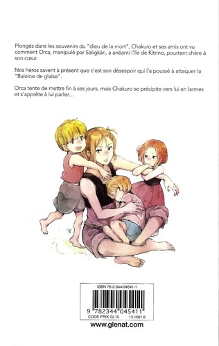 Plongés dans les souvenirs du "dieu de la mort", Chakuro et ses amis ont vu comment Orca, manipulé par Saligkári, a anéanti l'île de Kítrino, pourtant chère à son coeur. Nos héros savent à présent que c'est son désespoir qui l'a poussé à attaquer la "Baleine de glaise". Orca tente de mettre fin à ses jours, mais Chakuro se précipite vers lui en larmes et s'apprête à lui parler...