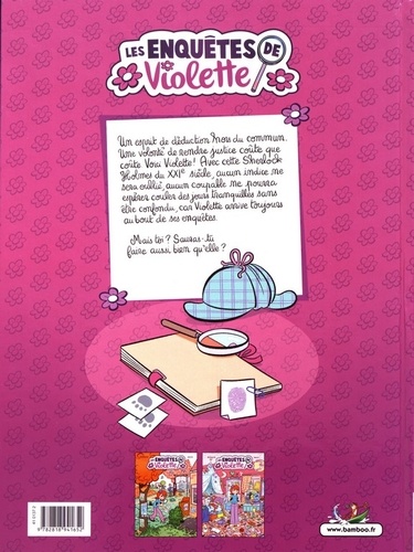 Un esprit de déduction hors du commun. Une volonté de rendre justice coûte que coûte. Voici Violette ! Avec cette Sherlock Holmes du XXIe siècle, aucun indice ne sera oublié, aucun coupable ne pourra espérer couler des jours tranquilles sans être confondu, car Violette arrive toujours au bout de ses enquêtes. Mais toi ? Sauras-tu faire aussi bien qu'elle ?