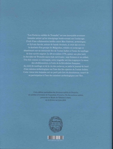 "Les Esclaves oubliés de Tromelin" est une incroyable aventure humaine autant qu'un témoignage bouleversant sur l'esclavage. Fruit d'une collaboration inédite entre Max Guérout, archéologue, et Sylvain Savoia, auteur de bande dessinée, le récit fait revivre la destinée d'un groupe de Malgaches, réduits en esclavage et abandonnés sur un minuscule îlot de l'océan Indien à l'issue du naufrage de leur navire négrier. Le 29 novembre 1776, quinze ans plus tard, le chevalier de Tromelin sauva huit survivants : sept femmes et un enfant. Une fois connue en métropole, cette tragédie servira à appuyer la cause des abolitionnistes, à l'orée de la Révolution française. Au récit du naufrage et de la vie des esclaves, se mêle le journal de bord d'une mission archéologique sur l'une des îles éparses de l'océan Indien. Cette vision très humaine est un parti pris fort du dessinateur, nourri de sa participation à l'une des missions archéologiques sur l'îlot.