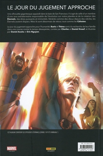 Le jour du jugement approche. Une silhouette gigantesque apparaît dans la baie de San Francisco. Il s'agit de celle d'un membre d'une race extraterrestre responsable de l'évolution sur notre planète et de la création des Eternels, des êtres puissants et immortels. Vénérés comme des dieux depuis des siècles, les Eternels avaient disparu. Mais ils sont désormais de retour, tout comme les Célestes. Le jour du jugement approche pour l'humanité. lkaris et Théna sont à la recherche de leur famille dans une course contre le temps désespérée, contée par Charles et Daniel Knauf, et illustrée par Daniel Acuna et Eric Nguyen.