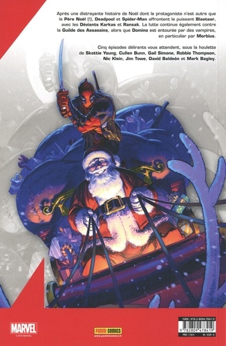 Après une distrayante histoire de Noël dont le protagoniste n'est autre que le Père Noël (! ), Deadpool et Spider-Man affrontent le puissent Blastaar, avec les Déviants Karkas et Ransak. La lutte continue également contre la Guilde des Assassins, alors que Domino est entourée par des vampires, en particulier par Morbius. Cinq épisodes délirants vous attendent, sous la houlette de Skottie Young, Cullen Bunn, Gail Simone, Robbie Thompson, Nic Klein, Jim Tomw, David Baldeon et Mark Bagley.