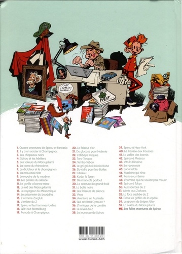 Les aventures de Spirou et Fantasio ne se déclinent pas que sous la forme d'histoires longues. La série compte aussi des histoires courtes tout à fait réjouissantes où Yoann et Vehlmann donnent libre cours à leur imagination débridée. Les voici enfin réunies dans un album avec un bonus : "Le Spip magazine". Dans "Spirou à la Rédac", notre groom favori plonge au coeur des archives du Journal Spirou et découvre, dans les caves abandonnées de l'hebdomadaire, un ancien combattant de la guerre Tintin-Spirou qui ignore que celle-ci est finie depuis des décennies. Dans le conte illustré "Le cadeau de Fantasio", la Rédaction doit faire dans son numéro de Noël une publicité pour une poupée qui parle. Suite à une gaffe de Spirou, c'est une tronçonneuse dont on chantera les louanges dans l'hebdomadaire pour enfants sages... Dans "La chevauchée sauvage", Spirou, Fantasio et Spip sont envoyés dans le passé par une invention d'Aurélien, le neveu du comte de Champignac, et devront chercher des portes spatiotemporelles dans les différents siècles qu'ils visiteront pour revenir au XXIe siècle. Dans "Destins contrariés", Spirou ne se sent pas à sa place comme héros titulaire du journal édité par les éditions Dupilon. Dans cette uchronie, Fantasio est gendarme, Zorglub garçon de café et Champignac un grand savant mégalo capable de manipuler l'espace-temps par l'usage de trous quantiques ! "Dans Supergroom" Spirou croit pouvoir rivaliser avec les superhéros américains. Mais un costume ridicule ne suffit pas pour égaler Superman... Un album hors série exceptionnel qui compile des histoires courtes parues depuis une petite dizaine d'années dans le beau Journal Spirou !