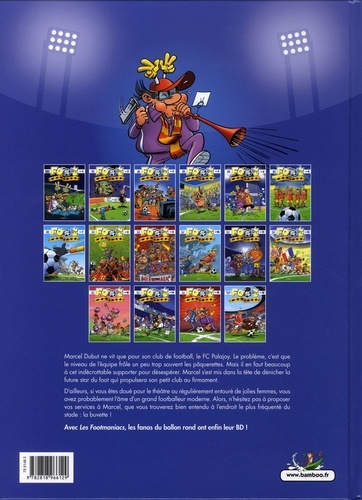 Marcel Dubut ne vit que pour son club de football, le FC Palajoy. Le problème, c'est que le niveau de l'équipe frôle un peu trop souvent les pâquerettes. Mais il en faut beaucoup à cet indécrottable supporter pour désespérer. Marcel s'est mis dans la tête de dénicher la future star du foot qui propulsera son petit club au firmament. D'ailleurs, si vous êtes doué pour le théâtre ou régulièrement entouré de jolies femmes, vous avez probablement l'âme d'un grand footballeur moderne. Alors, n'hésitez pas à proposer vos services à Marcel, que vous trouverez bien entendu à l'endroit le plus fréquenté du stade : le buvette ! Avec Les Footmaniacs, les fanas du ballon rond ont enfin leur BD !
