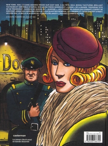 New York, 1930. Le gang Adamov règne sur East Side. A sa tête, Max, bossu taciturne, brillant tacticien et véritable gourou. Son jeune frère Morris est "l'ange" de la bande. Troisième tête de ce triumvirat : Samson Mc Queen, dit "Queenie", lieutenant irlandais qui connait l'esprit de son chef jusqu'aux moindres replis. Leur quartier général : le "Mendel's" dans Sheriff Street. Un soir Ida, la belle placeuse du "Loew's Delancey" pousse la porte du bar... (A SUIVRE), numéro 150, juillet 1990.
