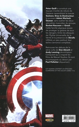 Après avoir défendu la galaxie contre Ultron, le terrien Peter Quill, alias Star-Lord, rassemble une équipe improbable. Adam Warlock, Drax le Destructeur, Gamora, Mantis, Groot et Rocket Raccoon vont vivre des aventures épiques qui vont changer à jamais le cosmos Marvel. Les Gardiens de la Galaxie sont nés ! Les créateurs d'Annihilation font naître dans cette saga l'équipe qui va révolutionner l'univers Marvel au cinéma, avec un succès inattendu. Les Gardiens de la Galaxie existaient auparavant, mais c'est la première fois que le casting est composé des personnages du film... et la première fois que l'équipe triomphe auprès des lecteurs !