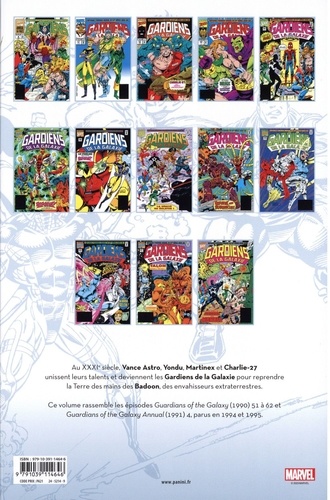 Quand Charlie-27 est emprisonné pour un crime qu'il n'a pas commis, Major Victory et son équipe tentent de le faire évader avec l'aide de Cuchulain. Mais pour cela, ils doivent affronter... Drax le Destructeur ? Et si Charlie est innocent, qui est coupable ? Puis, les Gardiens tentent de mettre fin à la guerre des mondes qui dure depuis un millénaire ! Dernier volume de l'Intégrale des aventures de la première équipe des Gardiens de la Galaxie, telle qu'elle existait dans les années 90. Des histoires se déroulant dans un lointain futur mais où l'on peut malgré tout retrouver des personnages familiers, comme Drax, Yondu et le Maître de l'Evolution !