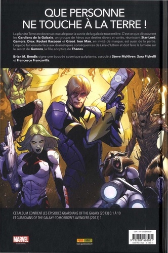 Alors qu'ils ne sont pas censés s'approcher de la Terre, les Gardiens de la Galaxie vont braver cette interdiction et accueillir un nouveau membre : l'Avenger Iron Man. Ensemble, ces héros doivent protéger Londres qui est le théâtre d'une invasion d'aliens Badoon, rencontrer la mystérieuse Angela puis affronter les armées de Thanos. Réédition en MARVEL DELUXE de la série MARVEL NOW ! de Brian Michael Bendis (Secret Invasion, Age of Ultron). Il est accompagné aux dessins par Steve McNiven (Uncanny Avengers, La mort de Wolverine) et Sara Pichelli (Ultimate Spider-Man, Fantastic Four).