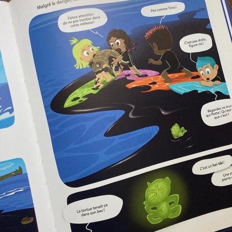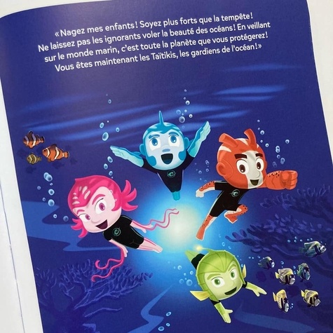 La première aventure extraordinaire des Taïtikis, les super-héros défenseurs des océans ! Par l'auteur des Pyjamasques. Sur une île au milieu du Pacifique, Taïcia, Timo, Liz et Samao s'apprêtent à relâcher les tortues marines qu'ils soignent depuis des mois. Alors qu'ils les accompagnent au large, l'une d'elles se retrouve engluée dans une flaque visqueuse. La petite bande s'approche pour lui porter secours et découvre une mystérieuse statuette polynésienne, un Pounamu. Non loin de là, une étrange créature les observe. Elle ne tarde pas à déclencher une véritable tempête. Les quatre enfants sont entraînés vers le fond. La situation semble désespérée mais la statuette se met à briller. Le Grand Tiki, roi des océans, apparaît et transforme les enfants en super-héros aquatiques. Ils deviennent les Taïtikis, gardiens de l'océan. C'est le début de grandes aventures fantastiques et écologiques !