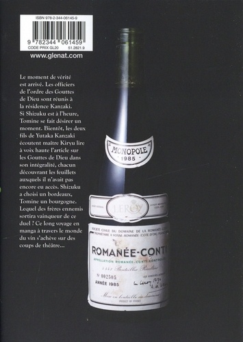 Le moment de vérité est arrivé. Les officiers de l'ordre des Gouttes de Dieu sont réunis à la résidence Kanzaki. Si Shizuku est à l'heure, Tomine se fait désirer un moment. Bientôt, les deux fils de Yutaka Kanzaki écoutent maître Kiryu lire à voix haute l'article sur les Gouttes de Dieu dam son intégralité, chacun découvrant les feuillets auxquels il n'avait pas encore eu accès. Shizuku a choisi un bordeaux, Tomine un bourgogne. Lequel des frères ennemis sortira vainqueur de ce duel ? Ce long voyage en manga à travers le monde du vin s'achève sur des coups de théâtre...
