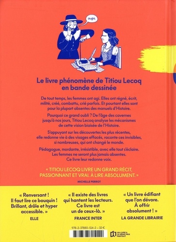 Le livre phénomène de Titiou Lecoq en bande dessinée De tout temps, les femmes ont agi. Elles ont régné, écrit, milité, créé, combattu, crié parfois. Et pourtant elles sont pour la plupart absentes des manuels d'Histoire. Pourquoi ce grand oubli ? De l'âge des cavernes jusqu'à nos jours, Titiou Lecoq analyse les mécanismes de cette vision biaisée de l'Histoire. S'appuyant sur les découvertes les plus récentes, elle redonne vie à des visages effacés, raconte ces invisibles, si nombreuses, qui ont changé le monde. Pédagogue, mordante, irrésistible, avec elle tout s'éclaire. Les femmes ne seront plus jamais absentes. Ce livre leur redonne voix. " Titiou Lecoq livre un grand récit, passionnant et vrai. A lire absolument. " - ; Michelle Perrot