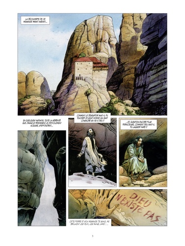 Reclus dans la falaise des Météores, Giovanni découvre la dépouille du frère Ephrem à côté d’une pierre sur laquelle ce dernier a inscrit une terrible révélation avec son propre sang : "Dieu n’existe pas". Choqué, le jeune Calabrais décide de quitter le monastère au plus vite. Il retourne à la demeure de son ancien maître, Lucius, dans la forêt des Abruzzes mais apprend que ce dernier a été assassiné par la mystérieuse confrérie des hommes en capes rouges qu’il avait vus auparavant. Ceux-ci se présentent comme les compagnons de l’Ordre du Bien, et remettent en cause la légitimité du pape !Voici la suite de cette grande fresque d'amour et d'aventures où passion, mort, astrologie et kabbale rythment l'odyssée de Giovanni, le jeune paysan qui avait osé lever les yeux sur la fille des doges. Frédéric Lenoir adapte son propre roman avec la complicité de Rodolphe et le dessin virtuose de Griffo.