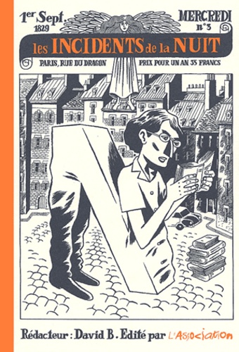 La série Les Incidents de la nuit rassemble la plupart des thèmes obsessionels de David B. tout en l'incluant lui-même comme personnage principal, au point qu'il y meure même... Nul doute que la position de l'Auteur sur la couverture de ce troisième Tome ait quelque chose à voir avec le Dieu Enn des précédents épisodes. A Suivre...
