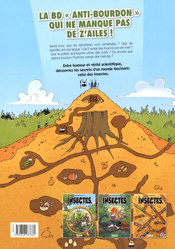 La série "anti-bourdon" qui ne manque pas de z'ailes ! Savez-vous que les termitières sont climatisées ? Que les abeilles ont une langue ? Qu'il existe des fourmis pot-de-miel ? Que la guêpe ammophile utilise des outils ? Ou encore que depuis toujours, l'homme a mangé des insectes ? Entre humour et vérité scientifique, cette BD ludique et drôle fera de vous un incollable du monde fascinant des insectes