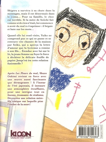 Shigeru a survécu à sa chute dans la montagne, mais il est désormais dans le coma... Pour sa famille, le choc est terrible. Si la mère de Seiichi fait comme si de rien n'était, lui commence à avoir du mal à s'exprimer : il bégaie et bute sur les mots... Quand elle lui rend visite, Yuiko ne comprend pas ce qui se passe et se retrouve vite chassée de la maison par Seiko, qui a aperçu la lettre d'amour que la lycéenne a remise à son fils... Etendue avec lui sur le lit, la jeune femme au foyer le force à déchirer la délicate feuille de papier. Jusqu'où ira cette relation fusionnelle ? Après Les Fleurs du mal, Shuzo Oshimi revient en force avec une oeuvre aussi fascinante que dérangeante ! A l'instar de l'été japonais, il instaure une atmosphère étouffante, pour une intrigue tout en finesse, étonnante de réalisme. Découvrez une relation mère-fils toxique sur laquelle pèse l'ombre de la mort !