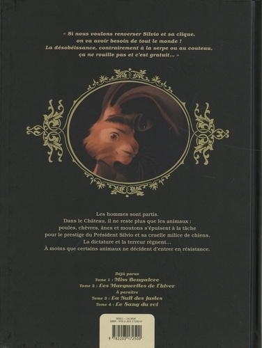 L'hiver a gagné le château. Le climat est rude pour ses habitants, d'autant que le Président Silvio continue de faire régner la terreur... Mais Miss B et ses amis, le lapin César et le rat Azélar, n'ont pas dit leur dernier mot. Baptisé " les Marguerites ", leur mouvement, continue les outrances au taureau dictateur, refusant le port de collier à grelots et exigeant la gratuité du bois pour tous les animaux. Pour être mieux entendus, ces courageux compagnons bravent le froid chaque nuit pour faire un sit-in sous les fenêtres de Silvio. Mais pour Miss B, vaincre la dictature ne peut se faire qu'en évitant le plus redoutable des pièges : la tentation de la violence. Parviendra t-elle à convaincre ses amis de résister pacifiquement ? Le défi semble bien difficile...
