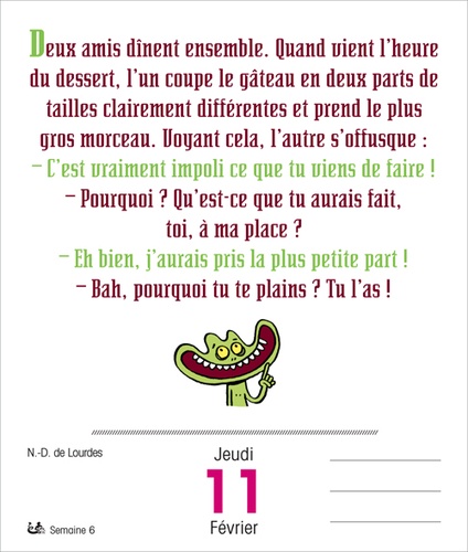 Rire, c'est bon pour la santé ! Alors, ne vous en privez pas ! Pour 2016, cet Almaniak vous offre un fou rire par jour grâce à une sélection des meilleures blagues de l'année. Rien de tel pour chasser les idées noires ! Nouvelles blagues pour 2016 !