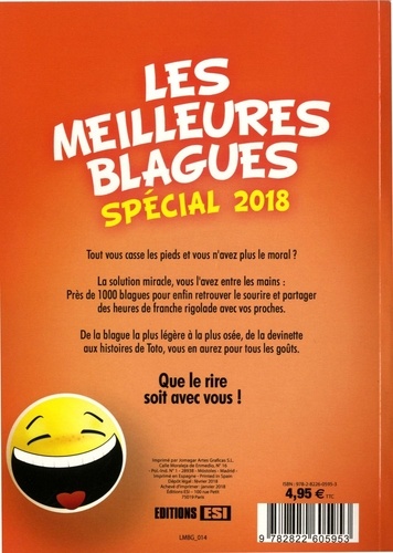 Tout vous casse les pieds et vous n'avez plus le moral ? La solution miracle, vous l'avez entre les mains : Près de 1000 blagues pour enfin retrouver le sourire et partager des heures de franche rigolade avec vos proches. De la blague la plus légère à la plus osée, de la devinette aux histoires de Toto, vous en aurez pour tous les goûts.