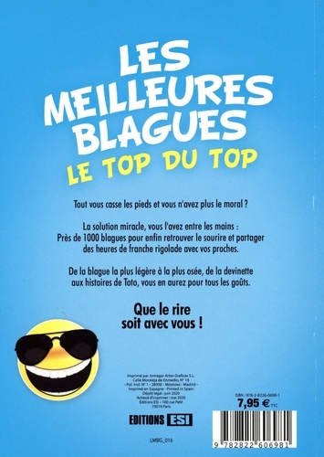 Tout vous casse les pieds et vous n'avez plus le moral ? La solution miracle, vous l'avez entre les mains : près de 1 000 blagues pour enfin retrouver le sourire et partager des heures de franche rigolade avec vos proches. De la blague la plus légère à la plus osée, de la devinette aux histoires de Toto, vous en aurez pour tous les goûts.