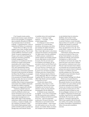 1942, descente des nazis dans le ghetto de Kovno, en Lituanie : son nouveau-né dans les bras, une jeune femme regarde autour d'elle, hagarde. Bessie K : "Je tenais le bébé, et j'ai pris mon manteau, et j'ai emballé le bébé, je l'ai mis sur mon côté gauche car je voyais les Allemands dire "gauche" ou "droite", et je suis passée au travers avec le bébé. Mais le bébé manquait d'air et a commencé à s'étouffer et à pleurer. Alors l'Allemand m'a rappelée, il a dit : "Qu'est-ce que vous avez là ? " Je ne savais pas quoi faire parce que cela allait vite et tout était arrivé si soudainement. Je n'y étais pas préparée (...) Il a tendu son bras pour que je lui tende le paquet ; et je lui ai tendu le paquet. Et c'est la dernière fois que j'ai eu le paquet". C'est l'un des nombreux témoignages de survivants des camps de la mort recueillis par Annick Cojean, grand reporter au Monde depuis plus de quarante ans. Elle reçoit en 1996 le prix Albert Londres pour Les mémoires de la Shoah. Ces textes magnifiques prennent une nouvelle dimension aujourd'hui avec cette adaptation en bande dessinée de Théa Rojzman et Tamia Baudoin. Une adaptation sensible des textes d'Annick Cojean en partenariat exclusif avec le Prix Albert Londres et le Mémorial de la Shoah.