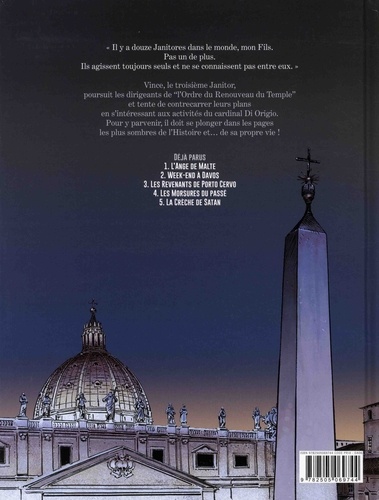 Vince se demande encore pourquoi et comment son frère, supposé mort depuis dix ans, est "ressuscité" et se trouve sur le yacht des dirigeants du Nouveau Temple. Mais ces derniers ont d'autres chats à fouetter : des rescapés des camps, bien déterminés à se faire justice, éliminent les membres du groupuscule les uns après les autres. Chargé de découvrir quels rapports le Cardinal Di Origio entretiendrait avec la société secrète, le Janitor se retrouve en face d'une des pages les plus sombres de l'histoire du Saint-Siège ! Mais combat-on les ombres du passé avec une arme ou par le pardon... ?