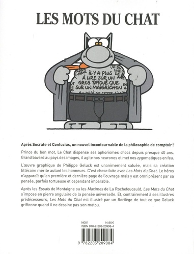 Prince du bon mot, Le Chat dispense ses aphorismes chocs depuis presque 40 ans. Grand bavard au pays des images, il agite nos neurones et met nos zygomatiques en feu. L'oeuvre graphique de Philippe Geluck est unanimement saluée, mais sa création littéraire mérite autant les honneurs. C'est chose faite avec Les Mots du Chat. Le héros n'apparaît qu'en première et en dernière page de l'ouvrage mais y est omniprésent par sa pensée, parfois tortueuse et cependant imparable. Après les Essais de Montaigne ou les Maximes de La Rochefoucauld, Les Mots du Chat s'impose en pierre angulaire de la pensée universelle. Et, contrairement à ses illustres prédécesseurs, Les Mots du Chat est illustré par un florilège de tout ce que Geluck griffonne quand il ne dessine pas son matou.