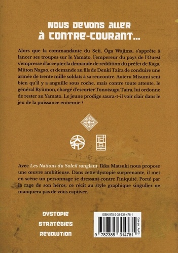 Alors que la commandante du Seii, Ôga Wajima, s apprête à lancer ses troupes sur le Yamato, l'empereur du pays de l'Ouest s'empresse d'accepter la demande de reddition du préfet de Kaga, Milton Nagao, et demande au fils de Denki Taira de conduire une armée de trente mille soldats à sa rencontre. Aoteru Misumi sent bien qu'il y a anguille sous roche, mais contre toute attente, le général Ryûmon, chargé d'escorter Tonotsugu Taira, lui ordonne de rester au Yamato. Le jeune prodige saura-t-il voir clair dans le jeu de la puissance ennemie ?