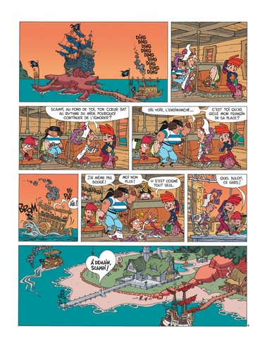 Les Naufragés est le 1er tome de l’adaptation en bande dessinée du dessin animé La Famille Pirate, par Fabrice Parme, l’un des cocréateurs du dessin animé à succès, et Aude Picault. Dans Les Naufragés, 1er épisode de La Famille Pirate, L’Os-à-Moelle est frappé d’une interdiction de naviguer. Le pauvre Victor Mac Bernik en est réduit à se faire naufrageur, une activité pourtant interdite sur l’île de la Tortue. Une nuit, il fait s’échouer un galion. Pas de bol ! Sa cale est remplie d’esclaves noirs. Le lendemain, quand il revient les chercher, ils ont disparu ! Son ennemi juré, Irvin le Requin, a volé la précieuse marchandise, a mis la main sur les esclaves et s’enrichit en vendant leurs services aux notables de l’île. La famille Pirate ne va pas rester les bras croisés ! Aux armes ! L’heure est à la manifestation, voire à l’action directe… Ce 1er album de La Famille Pirate version BD propose dans une histoire inédite de réfléchir à des questions civiques inhérentes au vouloir vivre ensemble, tout en s’amusant.