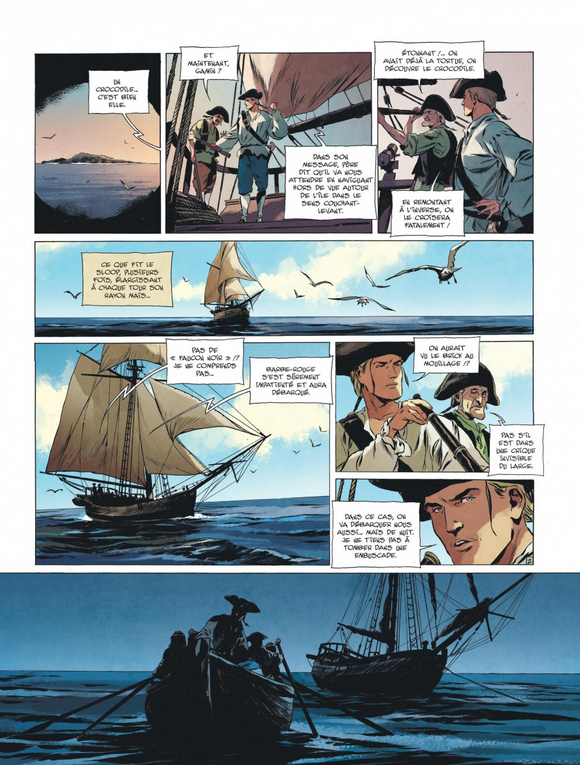 Lorsqu'Eric et Triple-Pattes trouvent enfin l'île du Crocodile, ils constatent que Barbe-Rouge et l'équipage du Faucon-Noir ont disparu. Toujours à la recherche de Baba, le démon des caraïbes et son fils adoptif vont se retrouver pris aux pièges de l'île aux chimères... Un tome 5 haletant scénarisé par Jean-Charles Kraehn et somptueusement dessiné par Stefano Carloni.