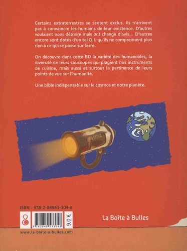 Certains extraterrestres se sentent exclus. Ils n'arrivent pas à convaincre les humains de leur existence. D'autres voulaient nous détruire mais ont changé d'avis... D'autres encore sont dotés d'un tel Q.I. qu'ils ne comprennent plus rien à ce qui se passe sur terre. On découvre dans cette BD la variété des humanoïdes, la diversité de leurs soucoupes qui plagient nos instruments de cuisine, mais aussi et surtout la pertinence de leurs points de vue sur l'humanité. Une bible indispensable sur le cosmos et notre planète.