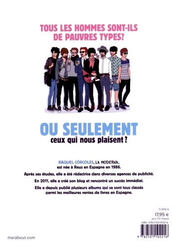 Ce livre est issu d'un blog créé en 2011, en Espagne, par la jeune Raquel Corcoles qui avait auparavant travaillé dans le journalisme et la publicité. Elle a aujourd'hui 50 000 followers sur Twitter et 80 000 sur Facebook. Inspirée par sa propre expérience, celle d'une jeune provinciale de 20 ans qui débarque dans une grande ville, elle a dédié cet ouvrage à tous les hommes qui ont l'air différents, sincères et sensibles... Mais qui au final ne sont que des pauvres types qui n'offrent pas de fleurs. Ayant collectionné les déboires amoureux, elle s'est servi de son expérience pour faire de cet album un guide des stéréotypes masculins : le classique, le furtif, le branché, la grande gueule...