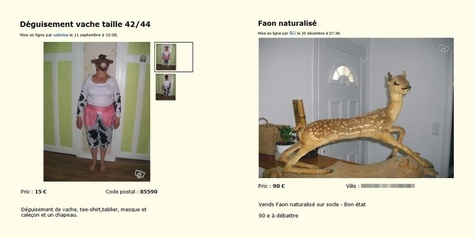 Avec en moyenne 250 millions de visites par mois (source : OJD), il n'est pas étonnant que le site du Bon coin regorge, entre autres, de propositions étonnantes. Ce petit ouvrage carré présente plus de 100 petites annonces incontournables - entre inventions surprenantes, descriptif énigmatique et orthographe approximative.