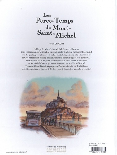 En visite scolaire au Mont-Saint-Michel, la jeune Alice est victime d'une chute temporelle. Séparée de sa classe mais guidée par les Veilleurs des Siècles, l'intrépide voyageuse va devoir affronter le dragon qui sommeille sous l'abbaye. Au fil de ses sauts à travers le temps, elle va ainsi observer la construction (et les effondrements) de l'abbatiale romane, croiser les anglais qui assiègent le Mont durant la guerre de Cent Ans ou encore apercevoir au loin le bombardement d'Avranches durant le débarquement de Normandie. Mais c'est aussi l'environnement particulier du Mont-Saint-Michel qu'Alice va découvrir : cette baie où les sables mouvants et une marée extraordinaire re-dessinent sans cesse un paysage hostile de sable et d'eau... Heureusement, la curieuse licorne capturée sur les Iles Chausey va s'avérer être une monture courageuse et téméraire ; face aux éléments mais aussi pour combattre la monstrueuse créature dont il faudrait percer le coeur. Entre album illustré et bande dessinée, ce récit emmène les jeunes lecteurs dans le mille-feuille architectural et historique qu'est le Mont-Saint-Michel. S'appuyant sur les travaux des chercheurs, historiens et archéologues, il tente de donner à voir les états successifs de l'abbatiale, dont la construction débuta en 1023.