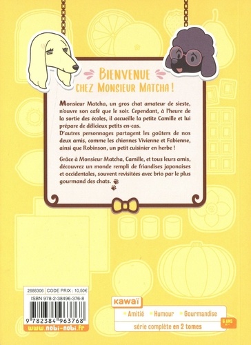 Monsieur Matcha, un gros chat amateur de sieste, n'ouvre son café que le soir. Cependant, à l'heure de la sortie des écoles, il accueille la petite Camille et lui prépare de délicieux petits en-cas. D'autres personnages partagent les goûters de nos deux amis, comme les chiennes Vivienne et Fabienne, ainsi que Robinson, un petit cuisinier en herbe Grâce à Monsieur Matchs, Camille, et tous leurs amis, découvrez un monde rempli de friandises japonaises et occidentales, souvent revisitées avec brio par le plus gourmand des chats.