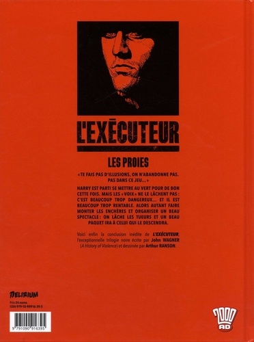 "Te fais pas d'illusions, on n'abandonne pas. Pas dans ce jeu... " Harry est parti se mettre au vert, pour de bon cette fois. Mais décidément les "voix" ne le lâchent pas : on ne peut pas laisser un exécutant dans la nature, c'est beaucoup trop dangereux et il est de toute façon bien trop rentable. Alors autant faire monter les enchères et profiter de l'occasion pour organiser un beau spectacle : on lâche les tueurs et un beau paquet ira à celui qui le descendra enfin. Voici enfin la conclusion inédite de L'EXECUTEUR : LES PROIES (Button Man - Killer Killer). Après le succès critique des deux premiers volumes, LE JEU MORTEL et LA CONFESSION, John WAGNER et Arthur RANSON bouclent avec une maestria impressionnante la cruelle trilogie de L'EXECUTEUR. Toujours aussi noire et brutale, cette série noire est un joyau du genre que les amateurs savoureront jusqu'à la dernière case !