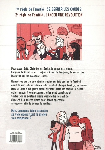 1re règle de l'amitié : Se serrer les coudes ; 2e règle de l'amitié : Lancer une révolution. Pour Abby, Brit, Christine et Sasha, la coupe est pleine. Le lycée de Hazelton est toujours à sec. De tampons, de serviettes. D'adultes qui les écoutent, aussi. Remontées contre une administration qui fait passer le football avant la santé de ses élèves, elles veulent changer tout ça, ensemble. Mais la tâche n'est guère aisée, surtout entre les maths, le sport et les amours ! Heureusement, elles sont complices et tentent de se soutenir même quand elles ne sont pas d'accord. Les quatre amies vont devoir apprendre à coopérer afin de donner le meilleur. Mais comment faire entendre sa voix quand tout le monde s'en tamponne ?