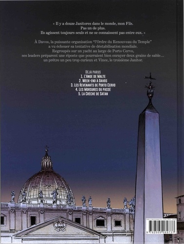 "Il y a douze Janitores dans le monde, mon Fils. Pas un de plus. Ils agissent toujours seuls et ne se connaissent pas entre eux." A Davos, la puissante organisation "l'Ordre du Renouveau du Temple" a vu échouer sa tentative de déstabilisation mondiale. Regroupés sur un yacht au large de Porto Cervo, ses leaders préparent une riposte que pourraient bien enrayer deux grains de sable... un prêtre un peu trop curieux et Vince, le troisième Janitor.