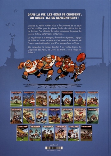 Dans la vie, les gens se croisent ; au rugby, ils se rencontrent ! L'équipe du Paillar Athlétic Club a fini première de sa poule et s'est qualifiée pour les phases finales du célèbre Bouclier de Bacchus. Pour affronter les autres vainqueurs de poules, les joueurs du PAC partent donc en tournée... Du Pays basque à la Bretagne, du Nord aux Pyrénées, l'équipe de Paillar va rouler sa bosse sur les routes et les terrains de France, en évitant toutefois une 3e mi-temps à l'eau, à Vichy... Qui remportera le fameux bouclier ? Les Toulou-Zinzins, les Grognards des Alpes, les Givrés du Nord... ou le village de Paillar ?